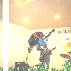 One time me and Brien were playin the geetars in his garage and I started to sing the song and I spit tic-tacs out all over my self and the floor, then another time i fell on stage, and another time I jumped up really high and when I landed my strap broke and my guitar fell off....